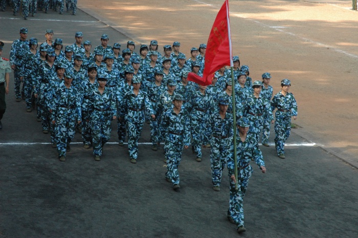 深秋的阳光依旧炽热,但是同学们身着整齐的军装,怀揣着期待的情怀,个个都以崭新的姿态迎接为期十天的军训阅兵。