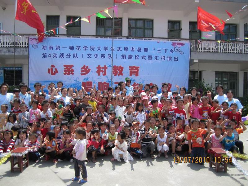 此次“三下乡”社会实践由文史系党总支陈天涯副书记、学工办邹华秀主任、教务办李希光主任亲自带队,有文史系、信工系、外语系等十八名志愿者参加,在湖南省桂东县新坊乡溪源小学开展了为期十天的支教 、调研、助学等一系列社会实践活动。