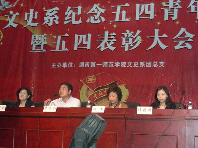 5月4日晚,在青春激扬、豪情满怀的《中国共产主义青年团团歌》声中,在火红的团旗下,文史系300多名师生隆重集会,纪念“五四”青年节。大会由系党总支副书记陈天涯主持,副院长李学全、学工部部长何文、文史系主任刘澍心、文史系党总支书记雷庆娥、院团委书记任晓晴应邀出席。