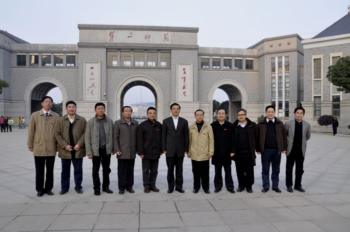周强省长详细听取汇报并发表重要讲话。他说:以前来过一师很多次,但都是在老校区,一直很想到新校区来看看,看看大家,今天来了,真的感到很高兴。新校园建设已经初具规模,很漂亮,很有特色、很有风格,我们一师的师生员工继承并弘扬了优良的传统,领导班子也很有战斗力,克服了很多困难,取得了很大成绩。特别是教职员工辛勤耕耘,默默奉献,做出了重要贡献,他代表省委、省政府向全体师生员工致以崇高的敬意!一师是湖南最大的品牌,是主席的母校,而且一直坚持办师范教育,培养基础教育的师资,很有水平、很有基础、很有特色,党和政府高度重视一师的发展。一师顺利升本,抓住了难得的历史性机遇,顺应经济发展对教育特别是师范教育的强烈需求,这也是新的发展起点。