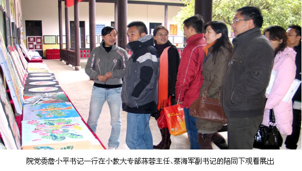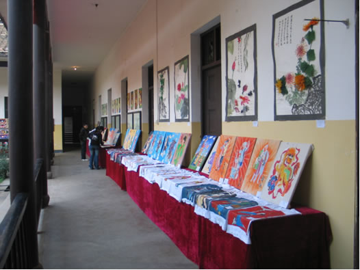 为了迎接2009年全国教师教育学会小学教师教育委员会年会在我院召开,同时配合我院团委组织的校园文化艺术节活动,小教大专部筹办的学生美术作品展于11月14日上午在青年毛泽东纪念馆八班寝室所在的四合院隆重开展, 300余幅作品摆满了四合院走廊。这些作品都是小教大专部学生用综合材料创作的,有芭比娃娃、刺绣、沥粉画、丝网花、剪纸、版画、板报、手抄报、民族服装设计等多种形式。校内外参观者赞不绝口,好评如潮。