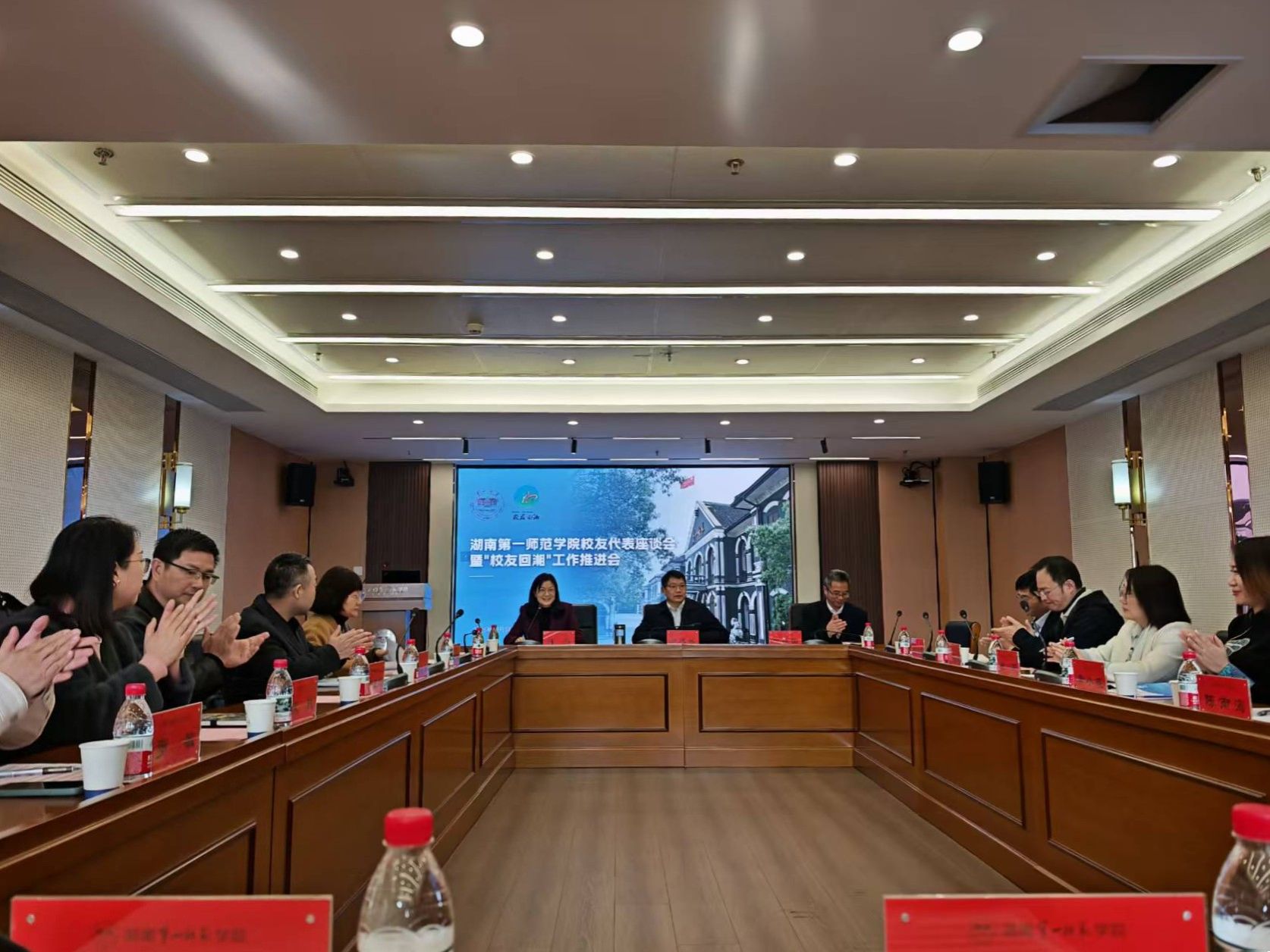 校友联络处负责人汇报了校友工作和“校友回湘”工作开展情况。学校正在构建校友服务新体系,涵盖招商引资、招才引智、校友捐赠、科研成果转化等核心任务,推动校友与母校共同发展。