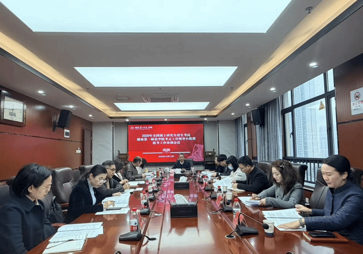 为深入贯彻落实教育部和全省硕士研究生招生考试(以下简称“研考”)安全工作与考务工作会议精神,2025年12月12日,我校在东方红校区百熙楼713会议室召开2026年全国硕士研究生招生考试考点工作领导小组及组考工作协调会,全面动员部署考点组考工作。校党委副书记、校长喻祖国,校党委委员、纪委书记凌艳平,校党委委员、副校长刘丽群出席会议。相关职能部门负责人参会,会议由刘丽群主持。