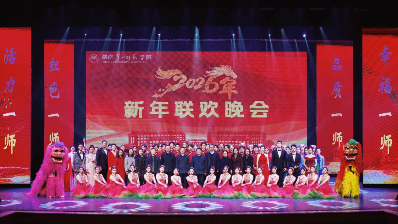 金蛇辞岁,华章激荡;骏马迎春,新篇开创。12月30日晚,我校2026年新年联欢晚会在东方红校区田汉剧场华彩绽放。全体校领导与千余名师生代表欢聚一堂,共赏文艺盛宴;晚会后,学校举办了青年教师迎新年游园舞会。