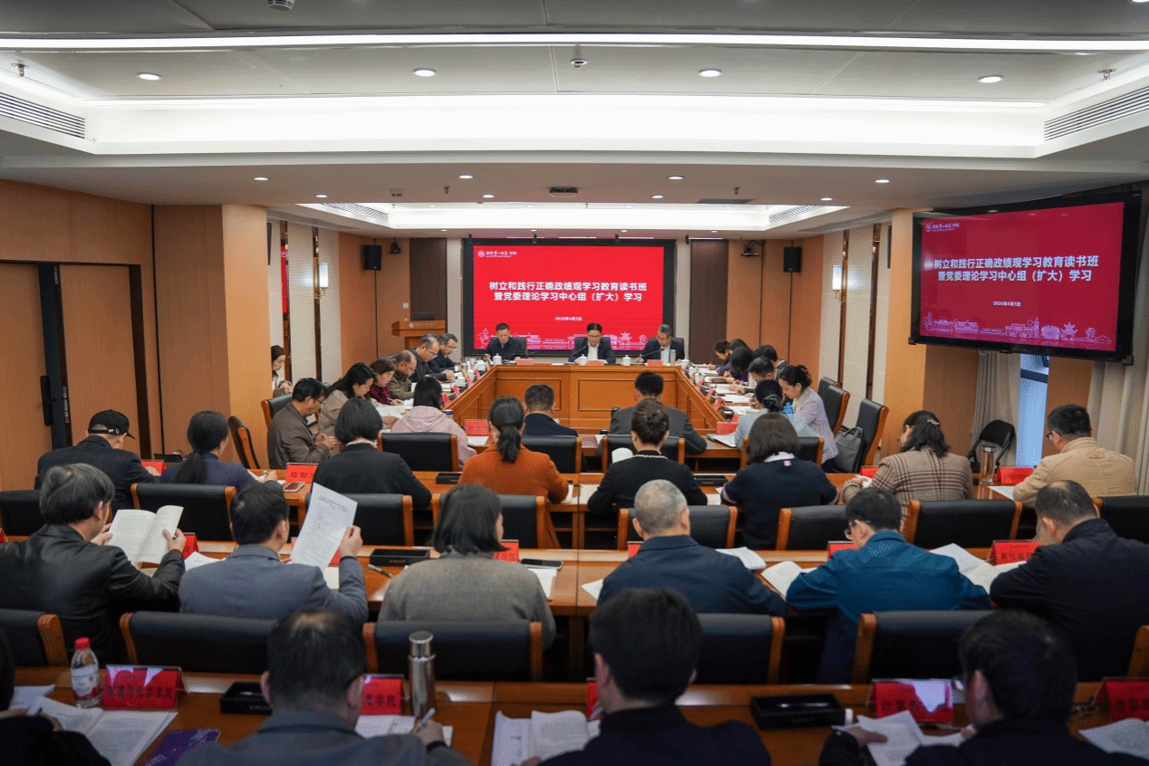 会上,党委书记李钢领学《习近平关于树立和践行正确政绩观论述摘编》,党委副书记黄快林传达学习沈晓明书记在树立和践行正确政绩观学习教育读书班暨十二届省委理论学习中心组第六十三次集体学习的讲话精神,党委委员、副校长彭晓辉领学《习近平总书记地方工作期间坚持正确政绩观生动实践》。