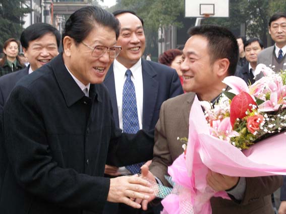3月25日,全国人大常务委员会副委员长李铁映同志一行来校视察。陪同视察的领导有省人大常委会副主任颜永盛、省政府副省长许云昭、省教育厅厅长张放平等。