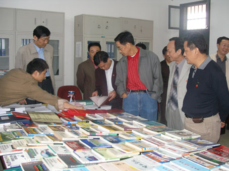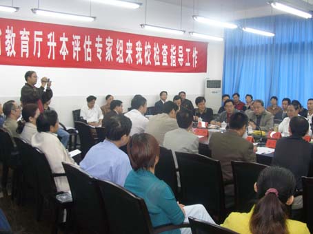 专家组在听取我校的升本工作汇报 专家组在教学系部检查