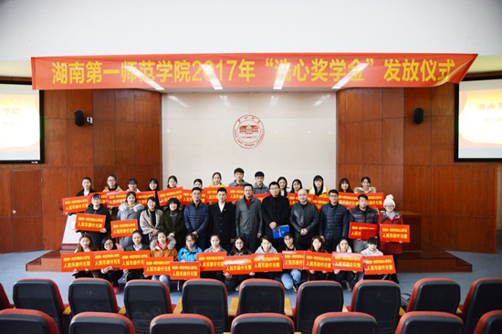 刘宇在致辞中指出,2017年长沙洗心禅寺的爱心力量帮扶了我校30名品学兼优却又无力承担学费的寒门学子,为他们艰难的求学道路上点亮了一盏明灯,为他们送来了希望,使寒门学子的求学之路不再充满荆棘,使洗心禅寺的无言大爱成为一师学子人生征程中巨大的精神力量。