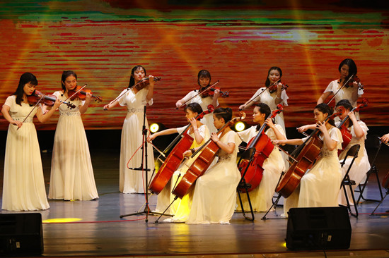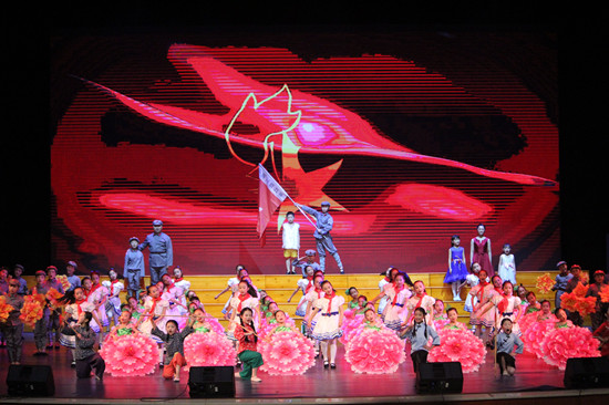 在观众阵阵掌声中,一师二附小表演的歌舞情景剧《红色记忆》闪亮登场,拉开了晚会的帷幕,孩子们手举红旗长矛,演绎红军艰苦历程,表达了他们对祖国母亲的无限热爱;诗朗诵《站在岁月肩膀上远眺》回顾2017卓越成就,展望2018全新气象,表达了一师学子对未来的向往和昂扬奋发的精神面貌;京剧《花田错》,有板有眼,传承弘扬优秀戏曲文化;舞蹈《侗帕》翩若惊鸿、宛若游龙,风雅脱俗;流行歌曲Bang Bang、Music Together节奏轻快明朗,散发出流行音乐的青春魅力;钢琴与弦乐《浏阳河》曲调清澈婉转,优美流畅;古典舞《水墨·潇湘》灵动飘逸,宛如一缕缭烟,又犹如隔雾之花,湖湘文化在其中熠熠生辉;茅古斯舞《祟》用精湛的舞技和民族化元素,表达出土家文化的特有魅力;民乐合奏《花好月圆》将中国传统乐器扬琴、琵琶、二胡、笛子完美融合,使传统艺术在舞台上焕发出无限生机与活力。晚会不仅有上述学生带来的精彩表演,还有老师们的联袂合作,“黄金搭档”樊小欢、徐稳老师的钢琴四手联弹,娴熟有力,用手指弹奏出一个又一个美丽的故事。最后,这场视听盛宴在欢快的歌伴舞《为祖国干杯》中完美谢幕。