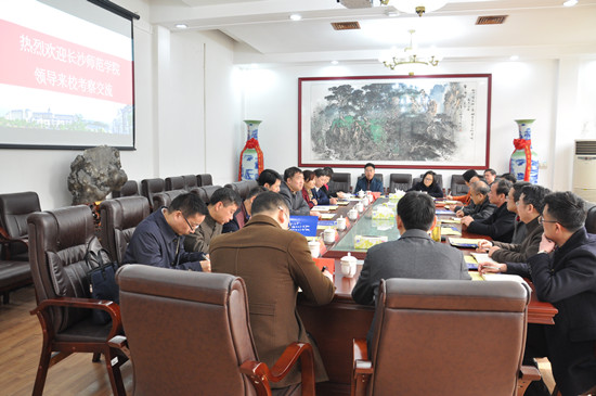 3月21日上午,长沙师范学院党委书记李学全、副书记杨斌、副校长江来登、副校长徐庆军率党政办、组织部、人事处、学生工作部、教务处、宣传统战部等部门负责人一行11人来我校考察交流。我校校领导彭小奇、刘志敏、刘鸿翔、刘宇、江正云热情接待了来访客人,并在东方红校区办公楼会议室进行了交流座谈。校党委书记彭小奇主持座谈会。