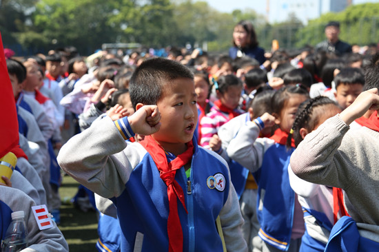随后,斑小学子在妙高峰青年毛泽东铜像广场参加了主题研学活动。在这里,同学们聆听了毛主席在一师刻苦求学、立志报国的精彩故事,了解了毛主席“既读有字之书,也读无字之书”的读书方法,集体朗诵了毛主席的诗词《沁园春·长沙》,演唱了红色儿童歌曲《红星闪闪放光彩》。最后,在学校大队辅导员老师的带领下,孩子们在毛主席铜像前庄严宣誓:一定谨记毛爷爷的教导,好好学习,天天向上,争做自信、担当的新时代斑小好少年,让星星火炬代代相传!