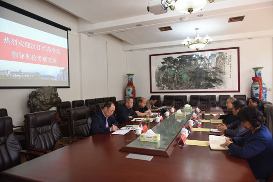 4月18日上午,汉江师范学院党委书记纪光录、发展规划处处长胡忠青、教育系主任郑传芹、武装部部长(保卫处处长)刘成一行4人来我校考察交流。我校党委书记彭小奇、人事处处长何培森、保卫处处长陈月林、教务处副处长温群雄热情接待了来访客人,并在东方红校区办公楼会议室进行了交流座谈。