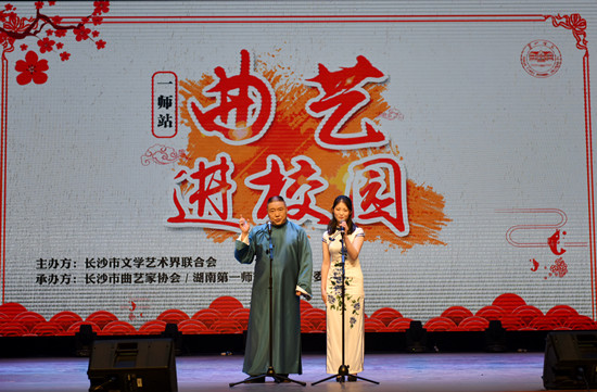 长沙市曲艺家协会一直以来坚持人民导向、为社会服务的宗旨,在各个高校推广传统曲艺,培养一批传统文化的传承者、创新者,为倡导社会主义核心价值观,繁荣社会主义文化事业做出了积极的贡献,今天的表演更是一个实证。