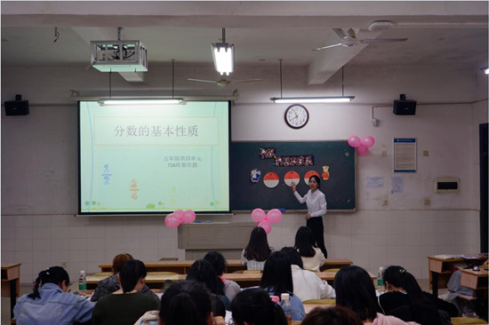 决赛中,选手们各自选取中小学数学的一个知识点,进行精心设计,撰写了教学目标明确、教学思路清晰的教案,制作了重难点突出、符合学生特点的课件,有的利用自己设计制作的精美教具学具进行辅助教学,向在场观众展示了扎实的教师基本功。经过近3个小时的角逐,张晶晶、闵宇、谢多获一等奖,李琴、夏雪、蔡培露、蒋琴琴获二等奖,林丽、陈秋宇、郭润琳、赵嫱、梁艳获三等奖。