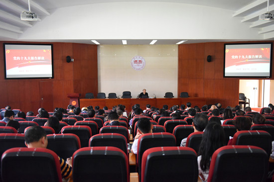 随后,校党委书记彭小奇以“党的十九大报告导读”为题在学习会上讲党课。彭小奇首先对党的十九大鲜明主题、主要成果、伟大意义进行了深刻阐述,让大家进一步理解了党在新时代举什么旗、走什么路、以什么样的精神状态、担负什么样的历史使命、实现什么样的奋斗目标的重大问题。