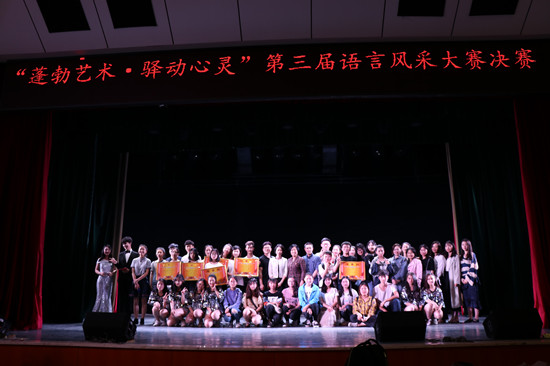 5月8日晚,我校第三届语言风采大赛决赛在特立楼实验剧场举行。教务处曹旻、外国语学院曾昭艳、刘畅立3位老师担任大赛评委,校党委宣传部、校团委、现代教育技术与网络中心、后勤处等部门负责人、各学院团总支书记和学生代表共400余人观看了比赛。
