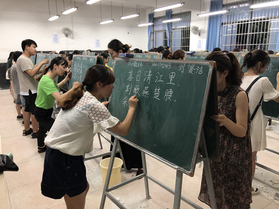 为夯实师范生的教学基本功,提升师范生的从教能力,5月12日至20日,利用中午、晚上和周末的课余时间,我校组织开展了2018年上半年师范生教师职业技能考核。各学院对此次考核工作高度重视,考前成立了考试工作领导小组,认真落实各项前期准备和组考工作。考试期间,教务处及各学院负责人到现场巡视指导,各项考核工作井然有序。