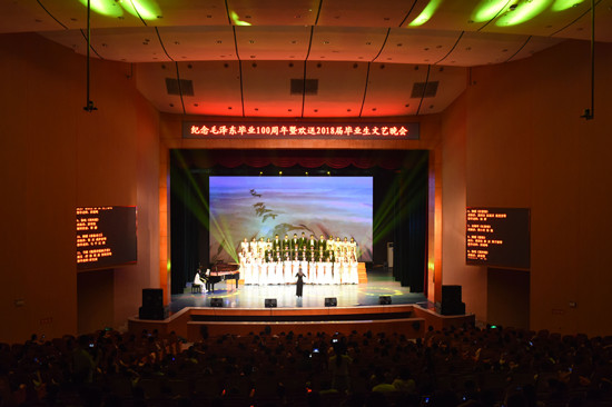 6月14日晚,我校纪念毛泽东毕业100周年暨欢送2018届毕业生文艺晚会在田汉剧场隆重举行。省人大常委会党组副书记、副主任王柯敏,省人大教育科学文化卫生委员会主任委员梁肇洪、副主任委员肖国安,省教育厅巡视员陈飞跃,省委组织部、省委党校、省发改委相关领导,中共湖南省委党校、湖南行政学院第86期厅级领导干部培训班学员以及我校全体校领导出席晚会。