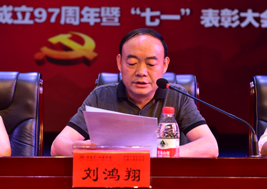 在庄严的国歌声中,大会拉开序幕。副校长刘鸿翔首先宣读了《关于表彰我校2017年度先进基层党组织、优秀共产党员和优秀党务工作者的决定》,授予马克思主义学院党总支等3个党总支、教育科学学院教师行政党支部等17个党支部“先进基层党组织”荣誉称号,授予李克勤等76人“教师优秀共产党员”荣誉称号,授予唐小芳等37人“学生优秀共产党员”荣誉称号,授予彭晓辉等9人“优秀党务工作者”荣誉称号。