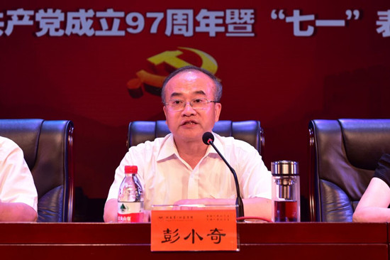 校党委书记彭小奇在讲话中代表学校党委向全校各级党组织和广大共产党员致以节日的问候,向受到表彰的先进集体和个人表示热烈的祝贺,向长期以来为学校建设发展默默奉献的师生员工表示崇高的敬意。彭小奇指出,今后两年是我校硕士学位授权单位建设和本科教学质量提升的关键期、本科教学工作审核评估的重要准备期。全校各级党组织一定要从大处着眼,从细节做起,团结带领广大党员和全体师生员工,咬定目标、勇挑重担、争当先锋、奋力攻坚。他希望我们全体共产党员发扬党的优良传统,增强党员的责任感和使命。牢记党的宗旨,争做忠诚干净担当的共产党人。夯实党建基础,发挥各级党组织的坚强领导核心作用。各级党组织要切实履行全面从严治党主体责任,充分发挥核心作用,全面落实党支部“五化”建设要求。不忘初心、牢记使命,深入学习贯彻党的十九大精神,在习近平新时代中国特色社会主义思想指导下,坚持全面从严治党,坚持立德树人根本任务,不断提高人才培养质量和办学水平,为一师再创辉煌而不懈奋斗。