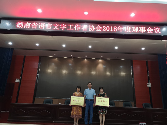 近日,我校语言文字工作捷报频传。6月30日,学校语言文字工作委员会主任、副校长江正云率队参加了湖南省语言文字工作者协会2018年度理事会议。会上,我校荣获“2017年度语言文字工作先进理事单位”称号。我校文学与新闻传播学院副教授毛丽被评为“2017年度湖南省语言文字工作先进个人”。会上同时下发了《2017年度全省普通话水平测试站目标管理考核评估情况的通报》(湘语办[2018]8号),我校被评为“湖南省普通话培训测试先进集体”,我校普通话培训测试站站长温群雄、学校语委专干金宏伟两位同志被评为“湖南省普通话培训测试优秀工作者”。