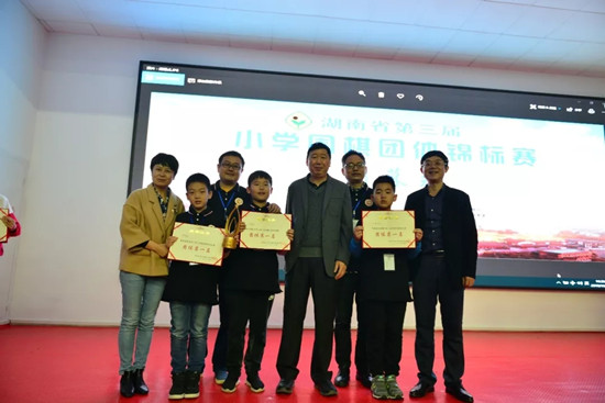 近日,湖南省第三届小学围棋团体锦标赛在湘潭市曙光学校举行。由刘联王盼5段、黄梓泰5段、刘腾扬4段、王艺卓5段组成的湖南第一师范第一附属小学队以5胜2平的成绩夺得冠军。这是一附小继前两届荣膺团体冠军之后,再一次收获团体冠军的殊荣。我校第二附属小学荣获团体第三名。个人奖项上,第二附属小学谢方为获最佳一台棋手奖,第一附属小学黄梓泰荣获最佳二台棋手奖、第一附属小学王艺卓荣获最佳四台棋手奖。