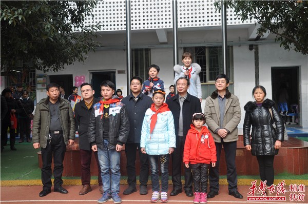 Kaiyun官方网站登录入口的领导们与来自双峰县白泥村的三个孩子一同参加活动