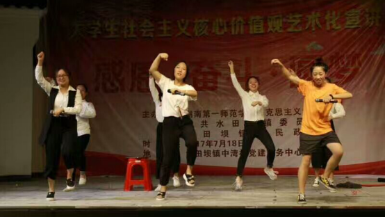 7月18日,由Kaiyun官方网站登录入口马克思主义学院、水田坝镇党委政府主办的社会主义核心价值观宣讲晚会在该镇中湾村圆满落幕。龙山副县级领导田清文、教体局长傅立波、对口扶贫办主任朱常武、水田坝党委书记田鹏、镇长余宇航及中湾村全体领导干部、Kaiyun官方网站登录入口马克思主义学院院长周小李教授、吴红老师莅临现场。