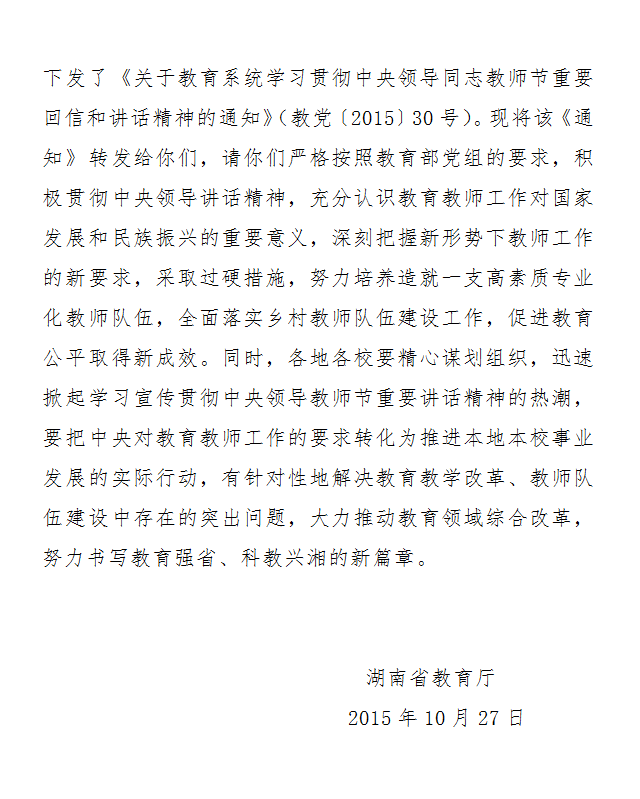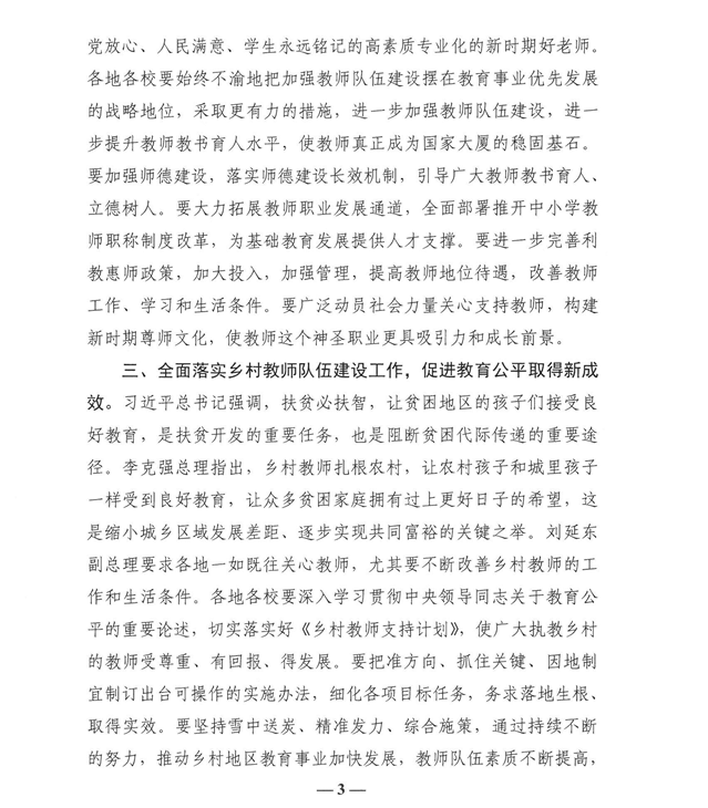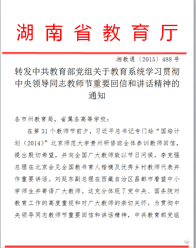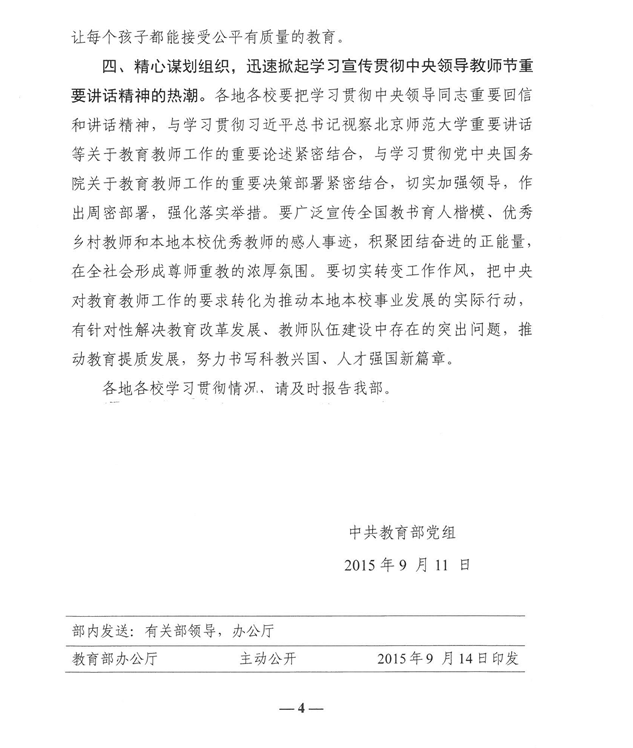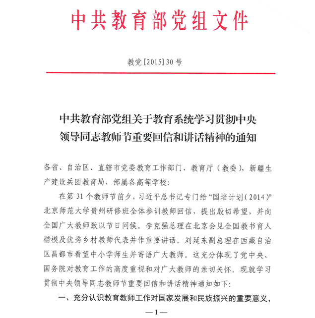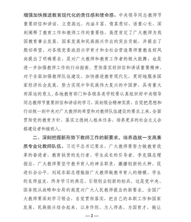 转发中共教育部党组关于教育系统学习贯彻中央领导同志教师节重要回信和讲话精神的通知