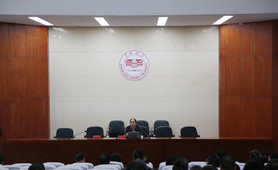 为进一步推动我校小学教育专业认证工作,迎接教育部师范专业认证专家进校评估,10月18日下午,学校特邀教育部师范类专业认证专家、湖南科技大学教育科学研究院常务副院长周险峰教授来校做小学教育专业认证培训。校领导彭小奇、童小娇、刘志敏、刘鸿翔、刘宇、曹兴、李昱、江正云,以及全校职能部门、各教学院部负责人参加培训。会议由副校长江正云主持。