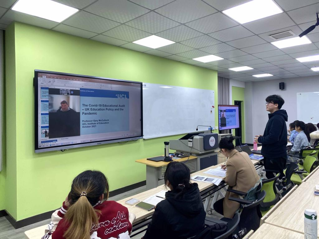 11月29日晚7点,我校“芙蓉学者”讲座教授、英国社会科学院院士、英国教育权威刊物《BritishJournalofEducationstudies》主编、伦敦大学教育学院人文与社会科学系主任GaryMcCulloch教授应邀通过ZOOM线上会议作题为“新冠肺炎教育审计:英国教育政策与疫情”的学术讲座。我校教育学院黄蓝紫老师、外国语学院王佳娣老师(翻译),以及部分师生参加了此次线上讲座。