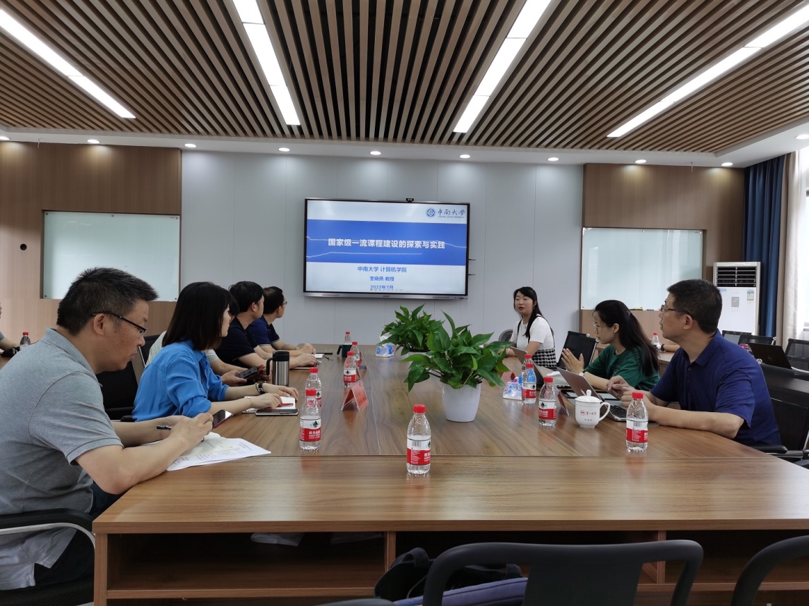 7月6日上午,我院邀请了中南大学计算机学院副院长、国家一流课程负责人奎晓燕教授以及超星学银在线课程运营负责人钟事为在玉衡楼406会议室开展了一流课程建设专题讲座。计算机学院行政领导班子成员、学院全体教师和其他学院部分教师参加了此次讲座,讲座由院长满君丰主持。