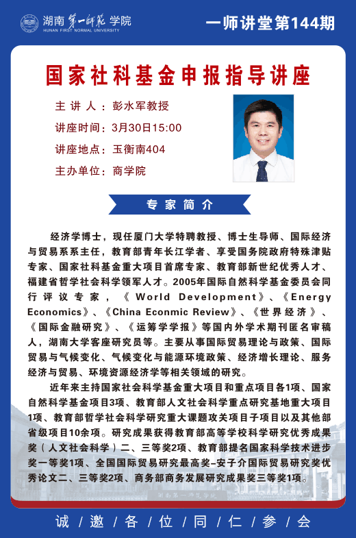 学术预告|一师讲堂第144期:国家社科基金申报指导讲座