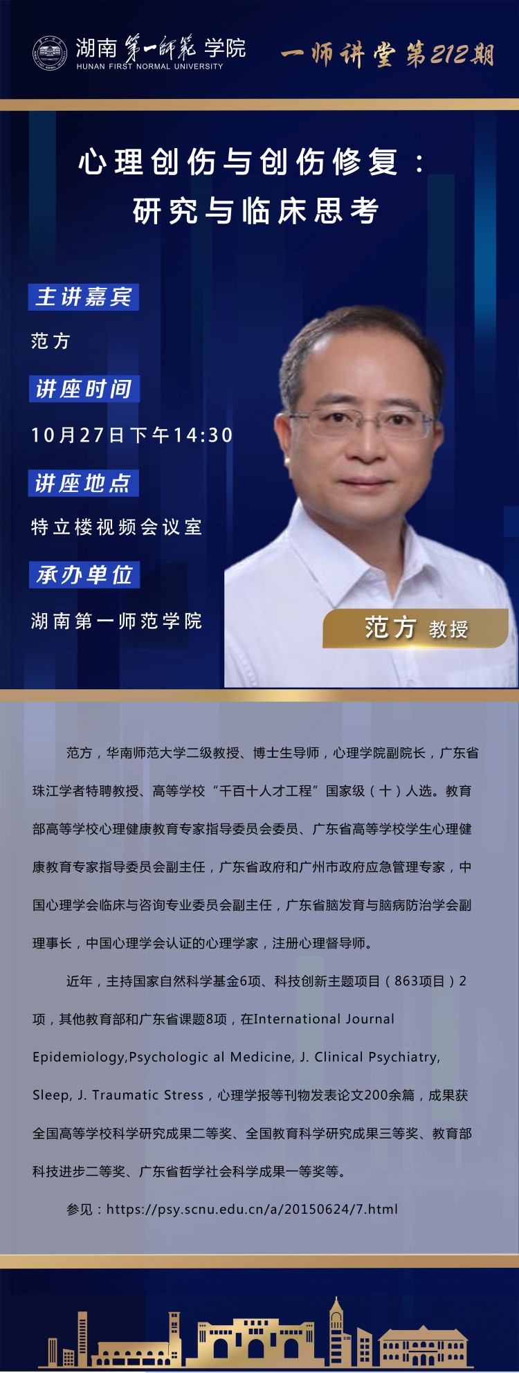 学术预告|一师讲堂第212期:心理创伤与创伤修复:研究与临床思考