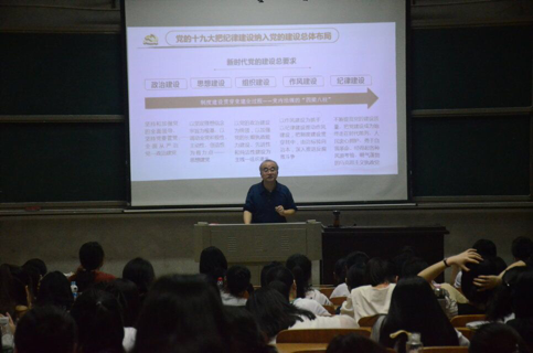 5月23日晚6点10分至9点40分,我校党委书记彭小奇教授先后在怀中楼南栋208、108教室作了“厚爱必须严管——关于全面加强党的纪律建设”专题,拉开了我校2109年度春季形势与政策课专题讲座的序幕,近千名学生参加了此次别开生面的专题教育,教务处副处长温群雄、马克思主义学院院长周小李到现场观摩。