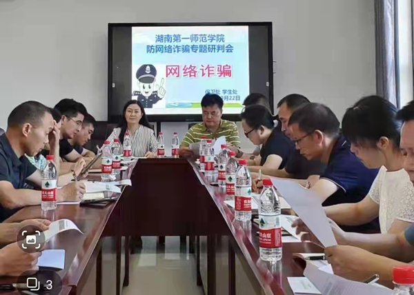 9月22日上午9:00,我校在双创楼710会议室召开了防网络诈骗专题研判会,副校长蒋蓉、保卫处、学生工作处、后勤处、团委和各学院有关工作人员参加,会议由保卫处处长向前主持。