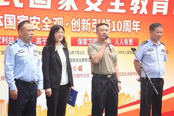 仪式上,学校联合长沙市反恐办、长沙市公安局反恐支队、特巡警支队高新特巡警大队、岳麓特巡警大队、第四特警大队、湘江新区应急管理局、教育局、卫生健康局、麓谷街道、高新公安分局国保大队、反恐大队以及高新区消防救援大队等单位在东方红校区开展了国家安全日现场宣传教育活动,通过播放宣传片、发放宣传册、集体宣誓、专题展板展示、开展签名、知识竞答等方式,向师生宣传普及国家安全知识,开展国家安全知识教育。