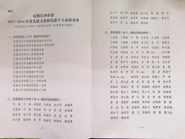鲁晓川、庄远红荣获民盟长沙市委2017-2018年度先进个人表彰